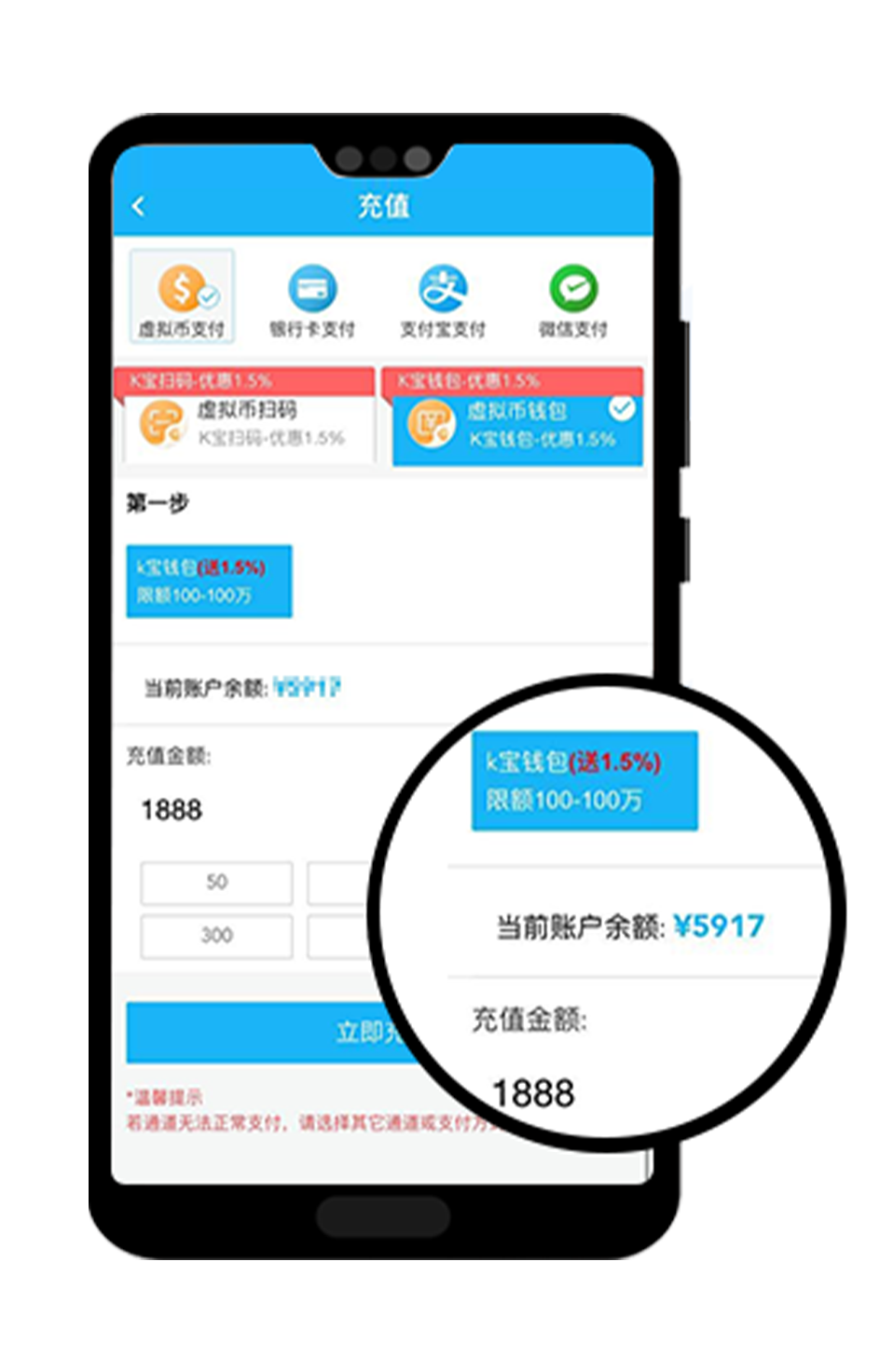 第一步:选择存款充值通道